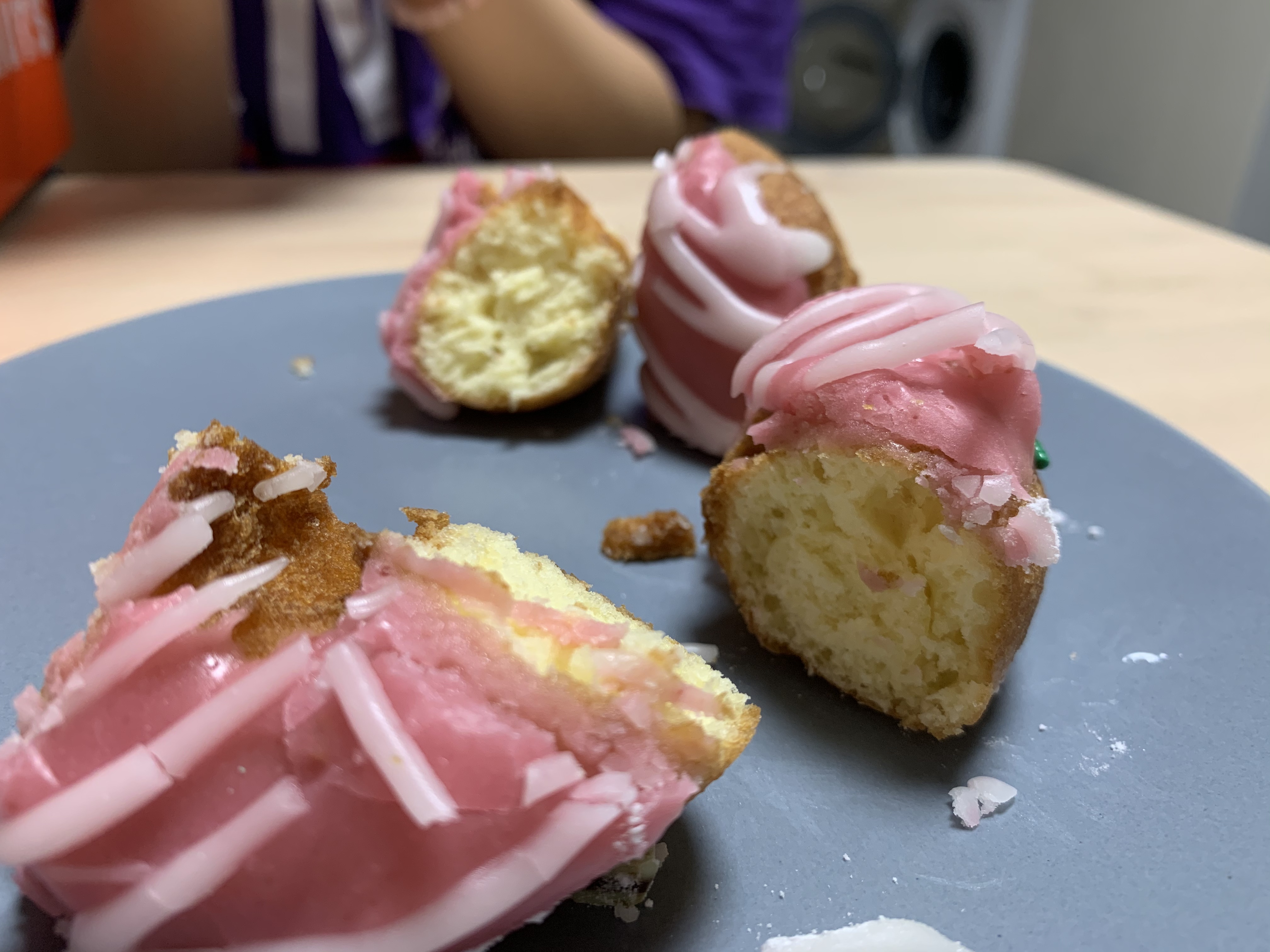 스프링클 미니도넛을 먹을 때 초코가 라즈베리케이크처럼 너무 심하게 달지도 않았지만